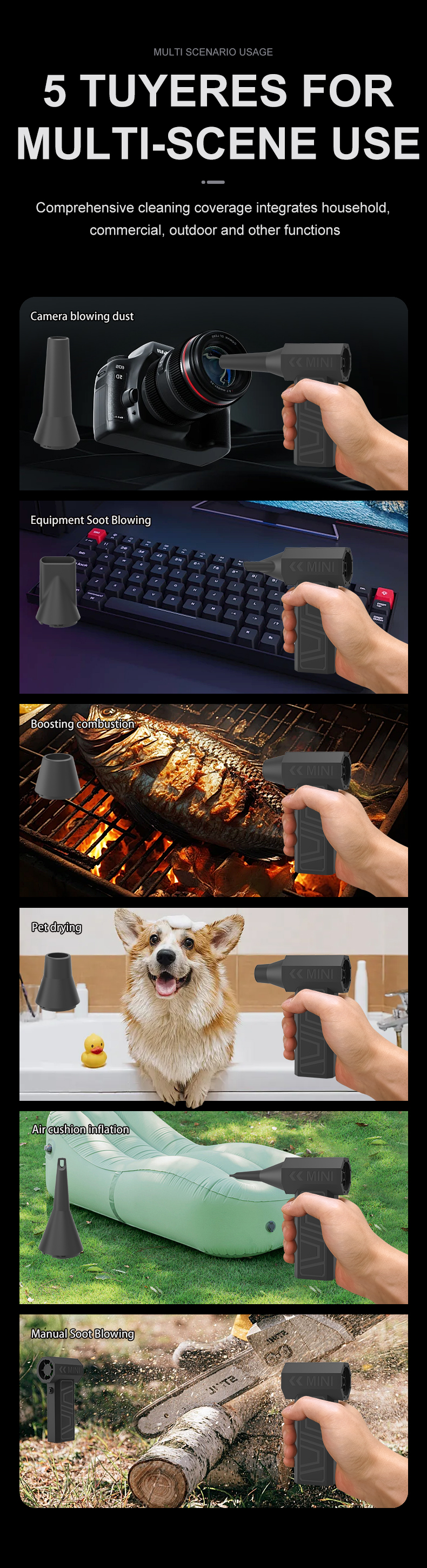 RPM ultra altas para un rendimiento potente: el motor de 105 000 RPM proporciona un potente flujo de aire para eliminar el polvo y los residuos.